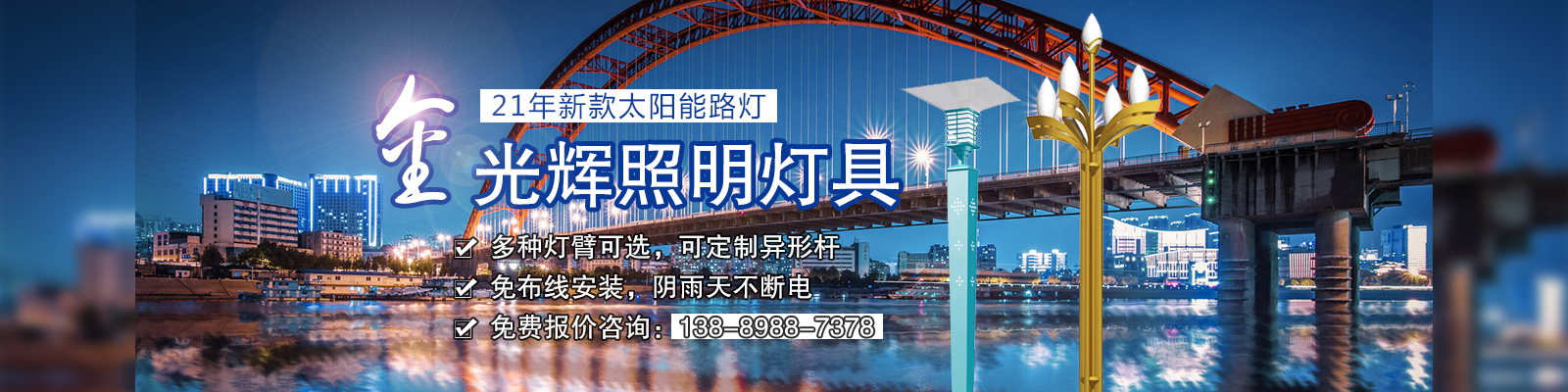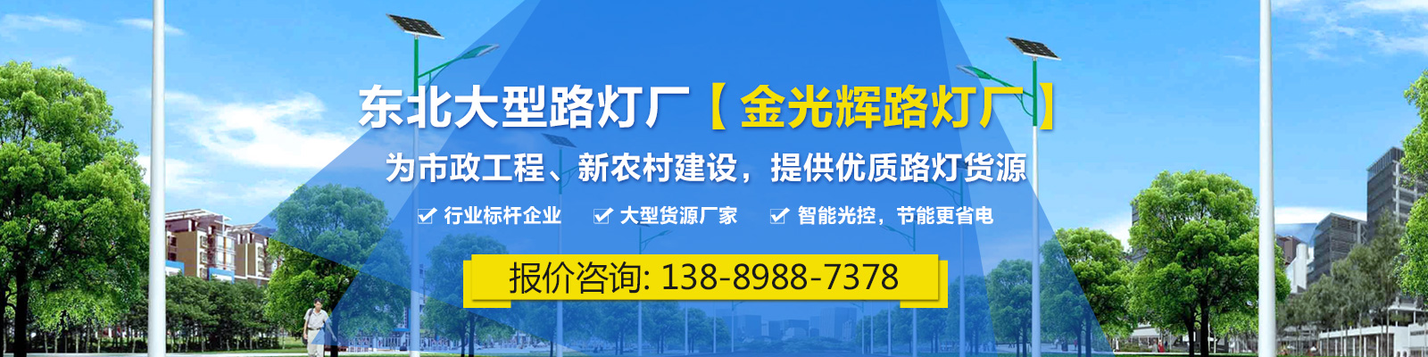 沈陽(yáng)金光輝道路照明工程有限公司是一家從事太陽(yáng)能路燈、庭院燈、高桿燈、景觀燈、草坪燈、工礦燈、LED照明、監(jiān)控桿、信號(hào)燈桿、音樂(lè)噴泉等室內(nèi)外照明燈具綜合性生產(chǎn)廠家及專業(yè)的研發(fā)、生產(chǎn)、銷售、服務(wù)為一體的技術(shù)企業(yè)。